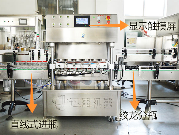 2、精確的絞龍分瓶機構和擋瓶系統,保證瓶子定位精確無誤,確保旋蓋效果。
