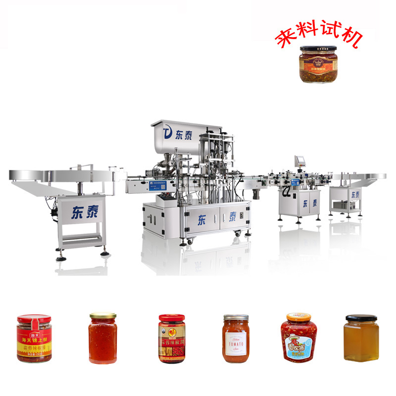 3、該灌裝機(jī)主要針對(duì)食品行業(yè)的醬類分裝設(shè)計(jì)生產(chǎn),特別適用于調(diào)味品中帶顆粒并且濃度較大的辣椒醬、豆瓣醬、花生醬、芝麻醬、果醬、牛油火鍋底料、紅油火鍋底料等物質(zhì)的粘稠醬類的灌裝。